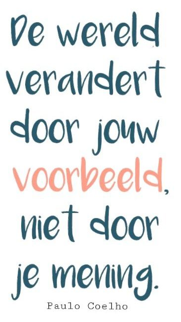 De wereld verandert door jouw voorbeeld, niet door je mening. Een prachtige citaat van de Braziliaanse schrijver Paulo Coelho. Wie zijn waarden zichtbaar maakt, kiest bewust en helpt anderen hun richting te vinden