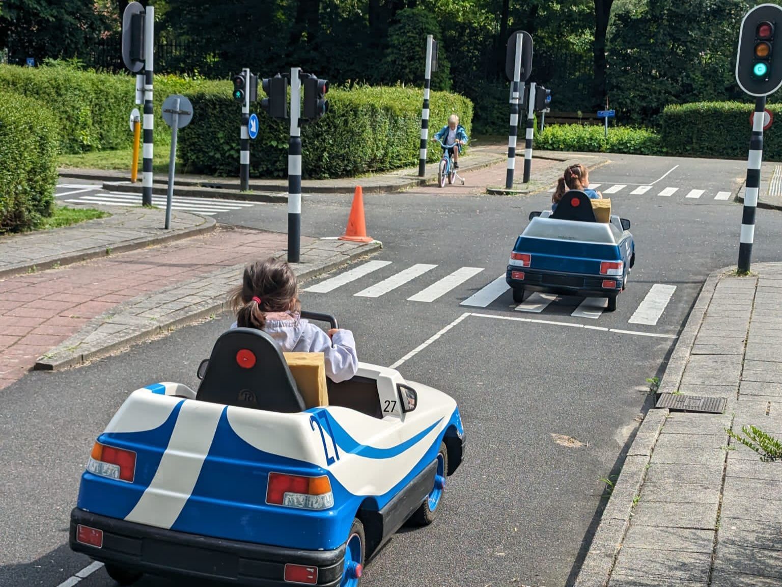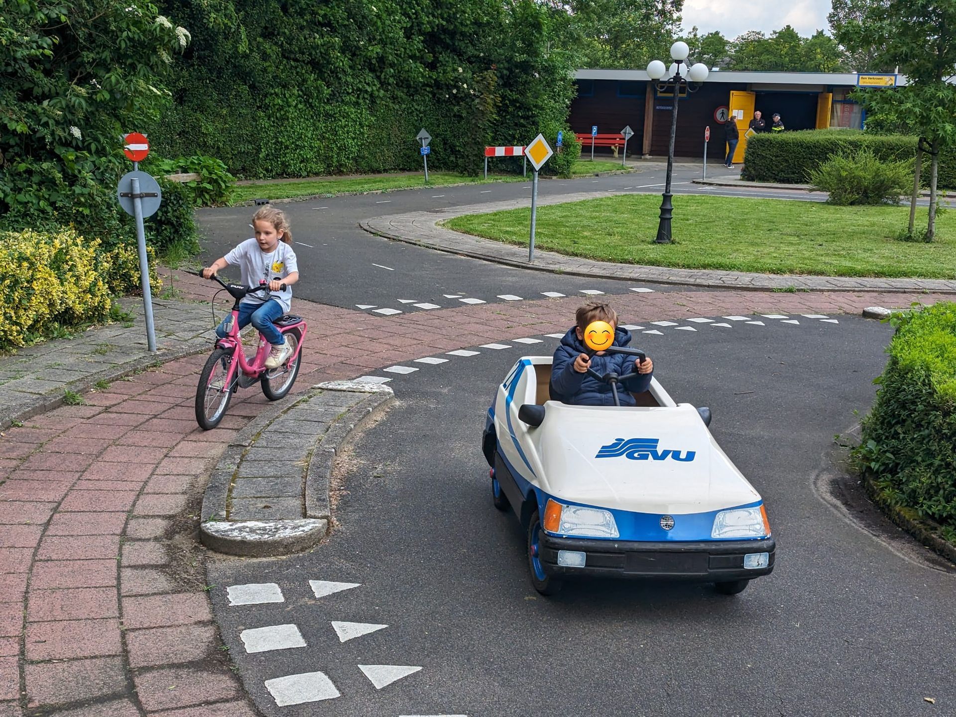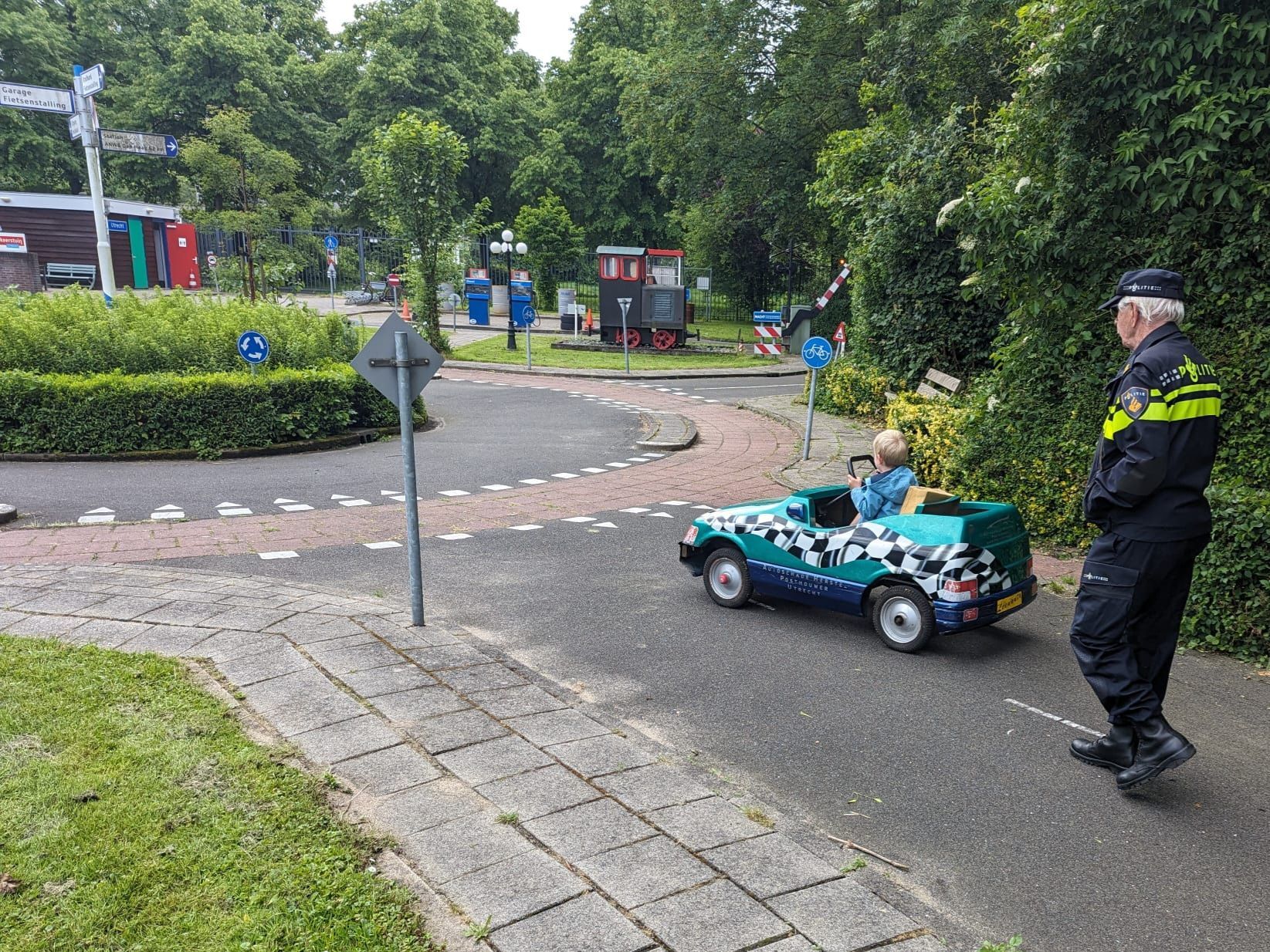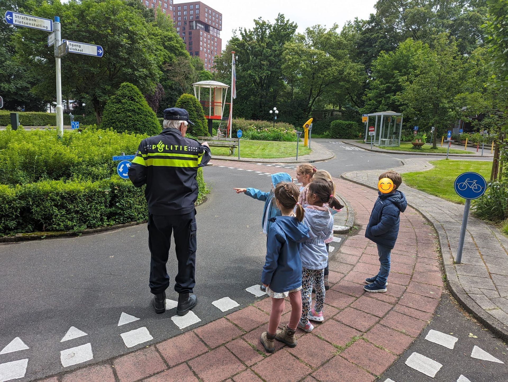 Een politiemedewerker is aanwezig om het praktische gedeelte te coördineren en geeft daarbij ook een korte theoretische uitleg over de betekenis van verkeersborden en de na te leven verkeersregels.